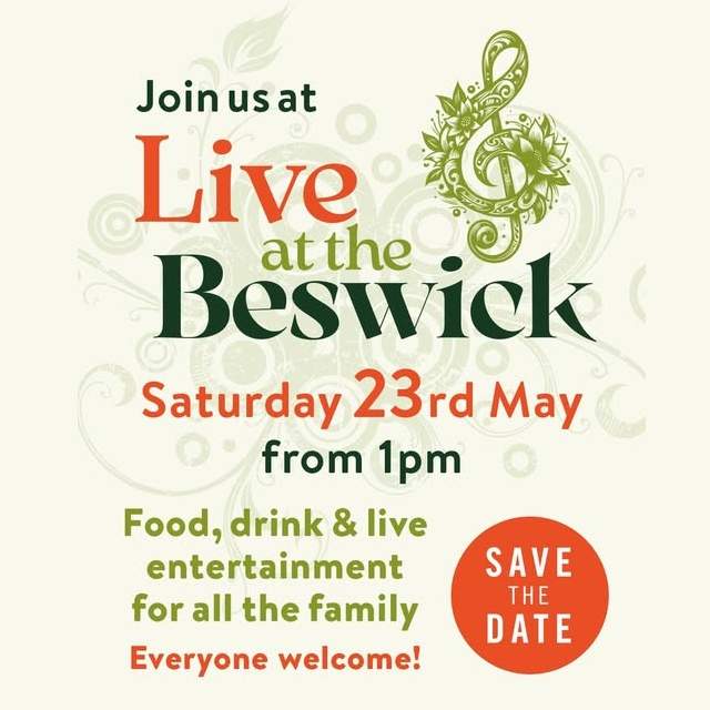 Introducing our first ever all day Live Music Event ‘Live At The Beswick’ which will take place in our car park on Saturday 23rd May 2026!!!!